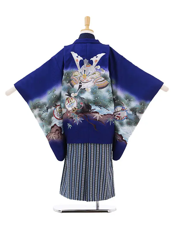 七五三レンタル(5歳男の子袴)5182ブルー地松かぶと×ブルー.ラメ入り袴
