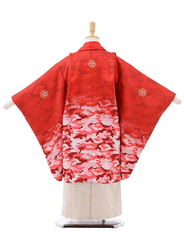 かんたん七五三レンタル(5歳男の子袴)5184カモフラ柄赤×クリーム色袴