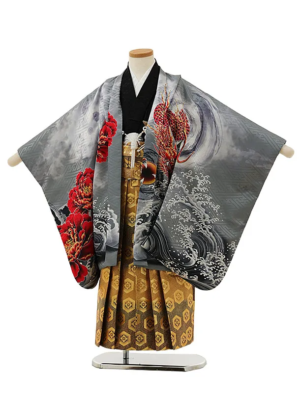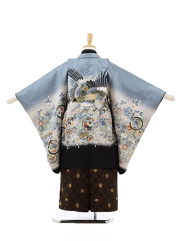 かんたん七五三レンタル(5歳男の子袴)5195グレー地桜に鷹×カーキ袴