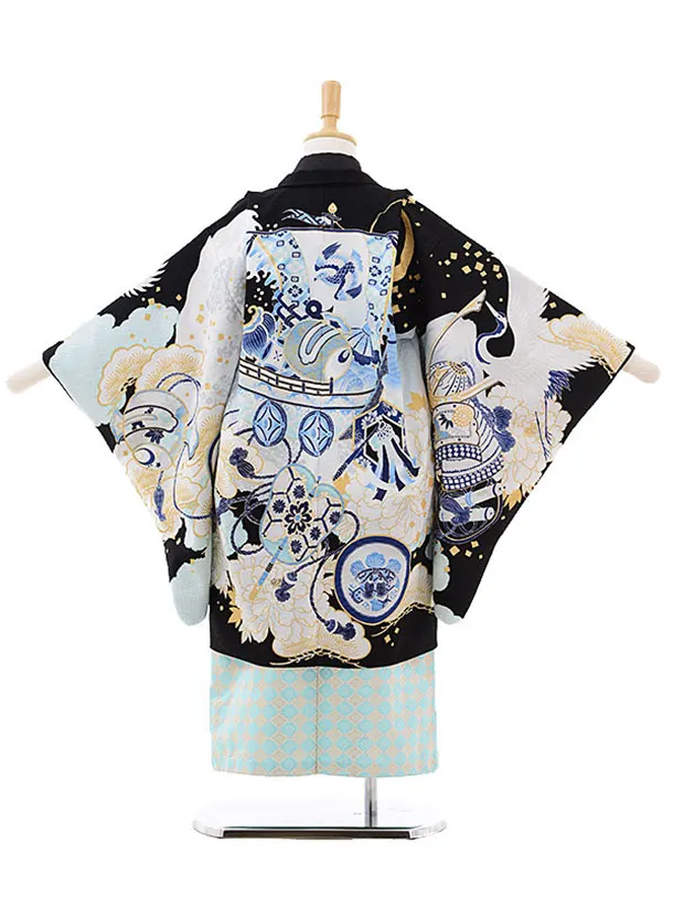 七五三レンタル(5歳男の子袴)5202乙葉宝船に兜黒×水色袴