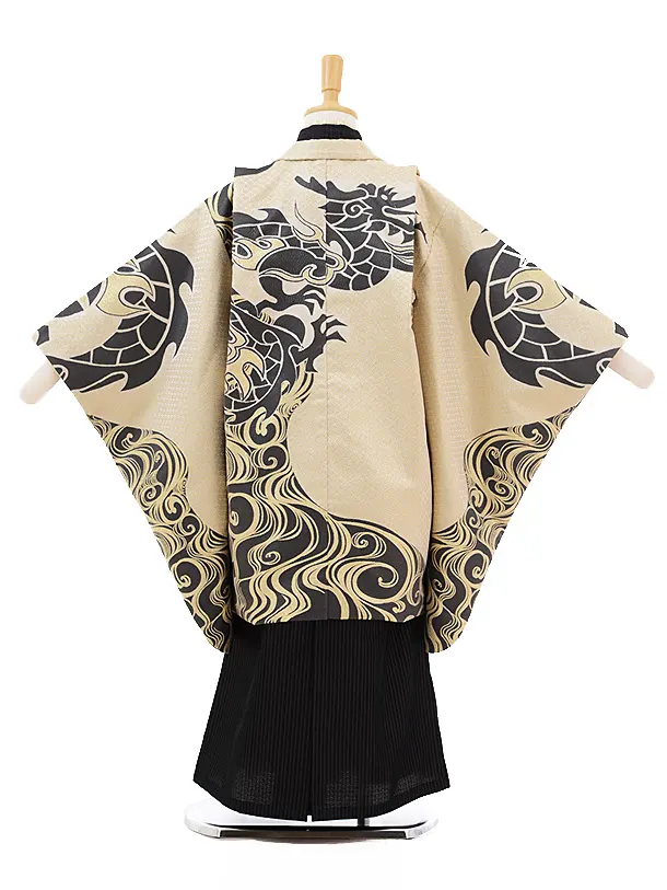 かんたん七五三(5歳男の子袴)5215おりびとベージュゴールド龍×黒袴