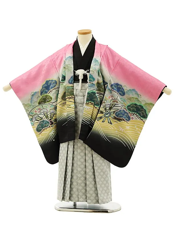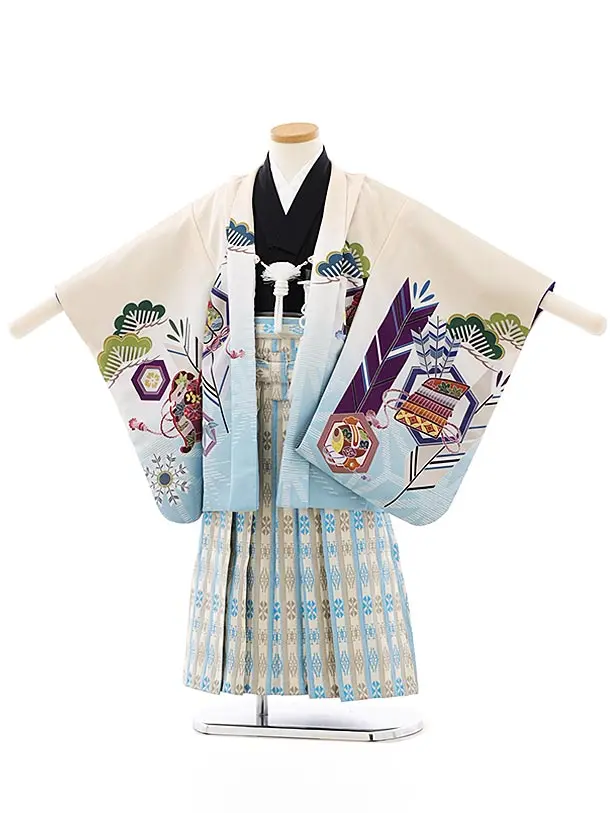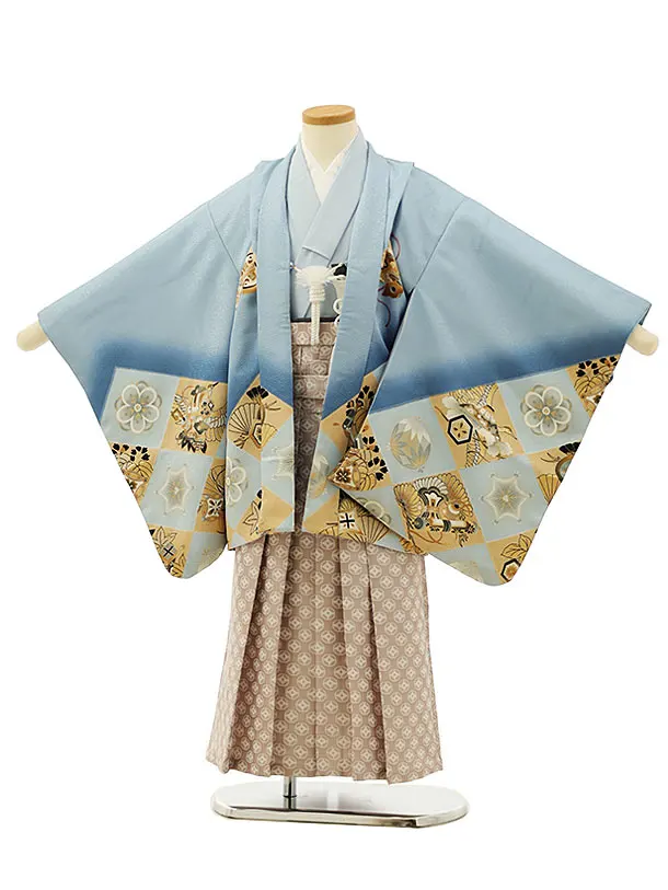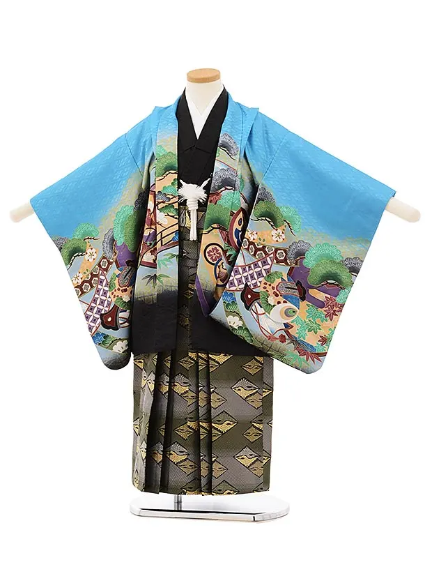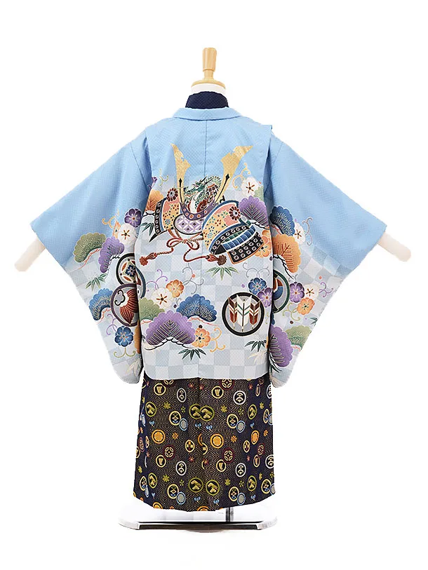 かんたん七五三レンタル(5歳男の子袴)5223水色地松竹梅にかぶと×紺地袴
