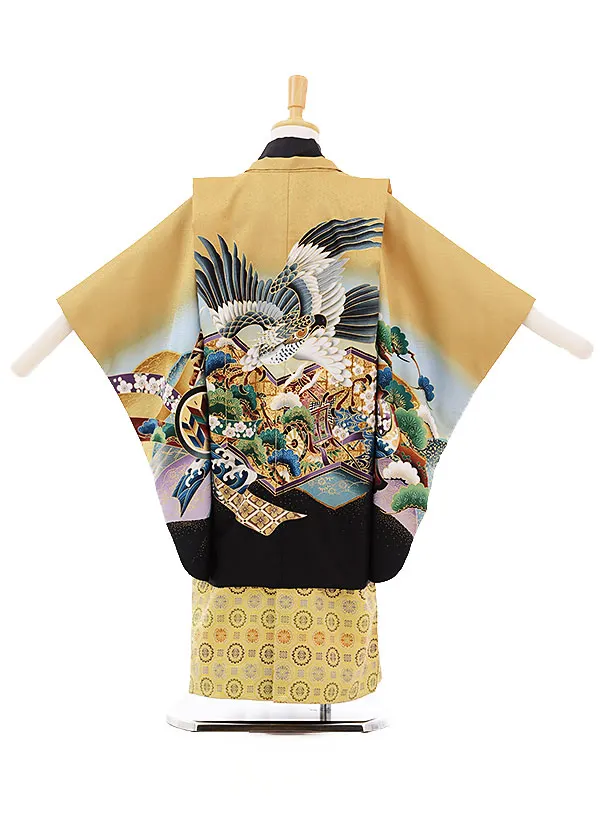 七五三レンタル(5歳男の子袴)5228からし色丸紋のしめかぶと×金地袴