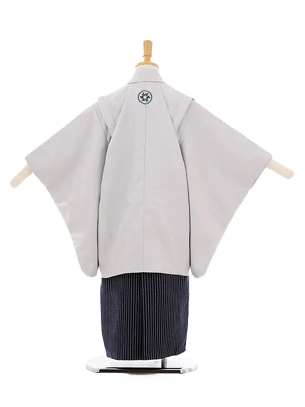 かんたん七五三レンタル(5歳男の子袴)5262グレー地丸紋×濃紺縞袴