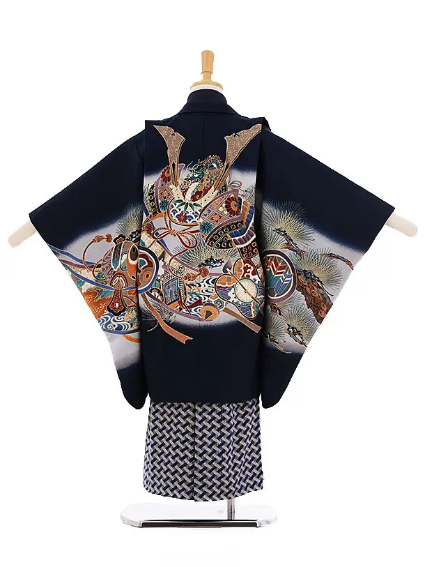 七五三レンタル(5歳男の子袴)5267紺地小槌かぶと×紺地袴