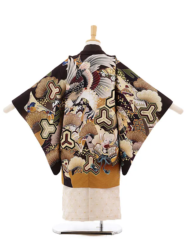 七五三レンタル(5歳男の子袴)5296 乙葉 こげ茶色 松鷹×ベージュ袴