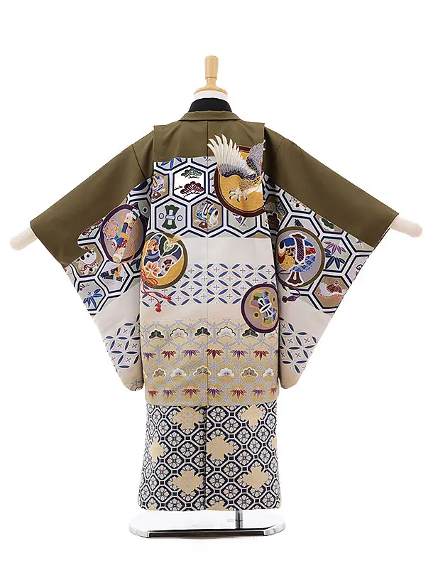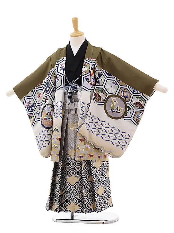 かんたん七五三(5男袴)5304 式部浪漫 モスグリーン×グレーグリーン袴