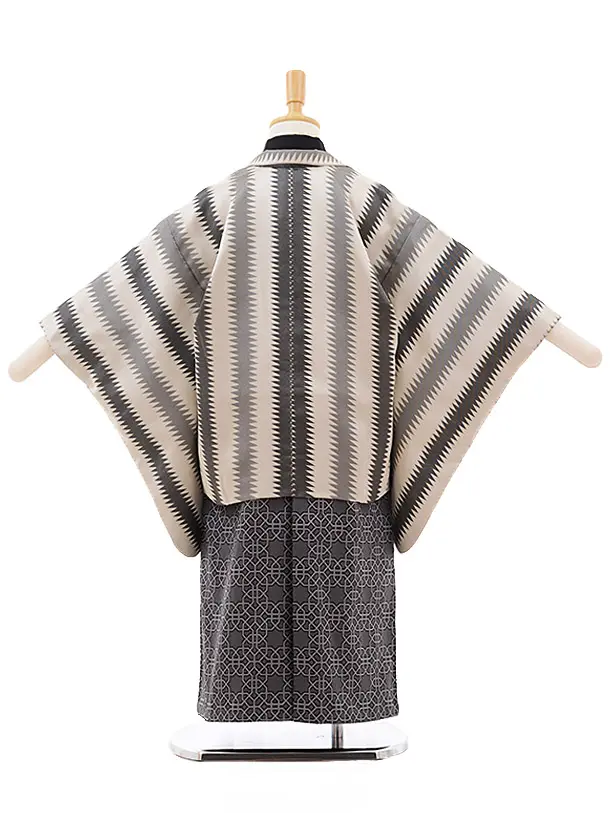 七五三レンタル(5歳男袴)5362おりびとベージュ グレー縞×グレー袴