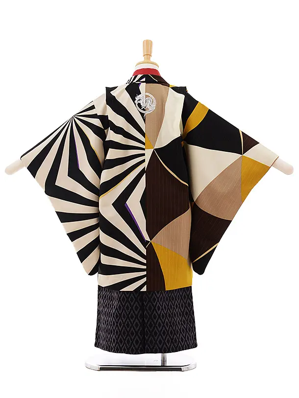 七五三(5歳男袴)5369 蒼 ベージュ 黒 変わり柄 アシンメトリー×黒袴