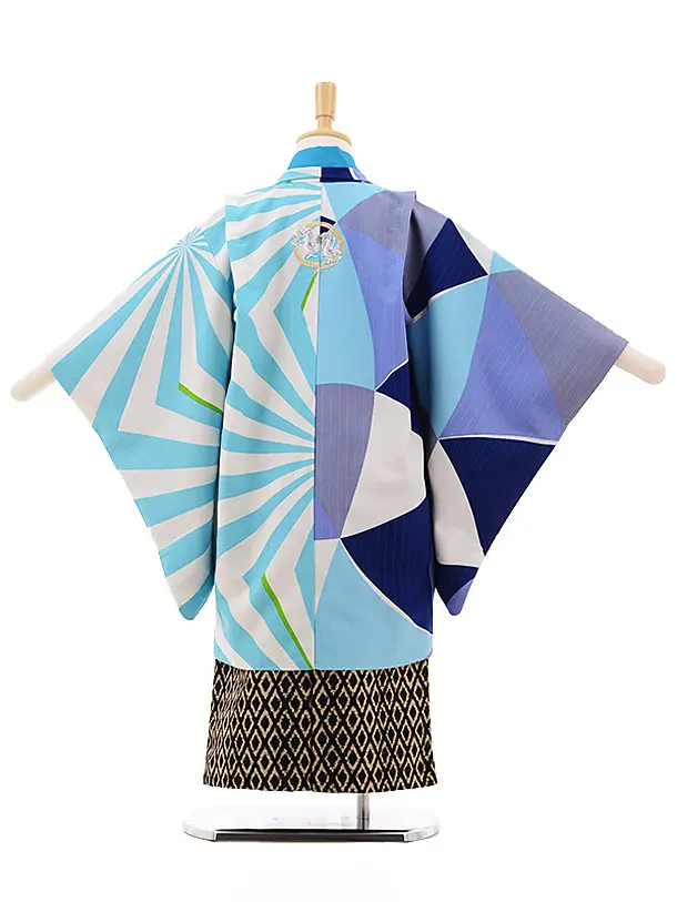 七五三レンタル(5歳男袴)5370 蒼 水色 変わり柄 アシンメトリー×黒地袴