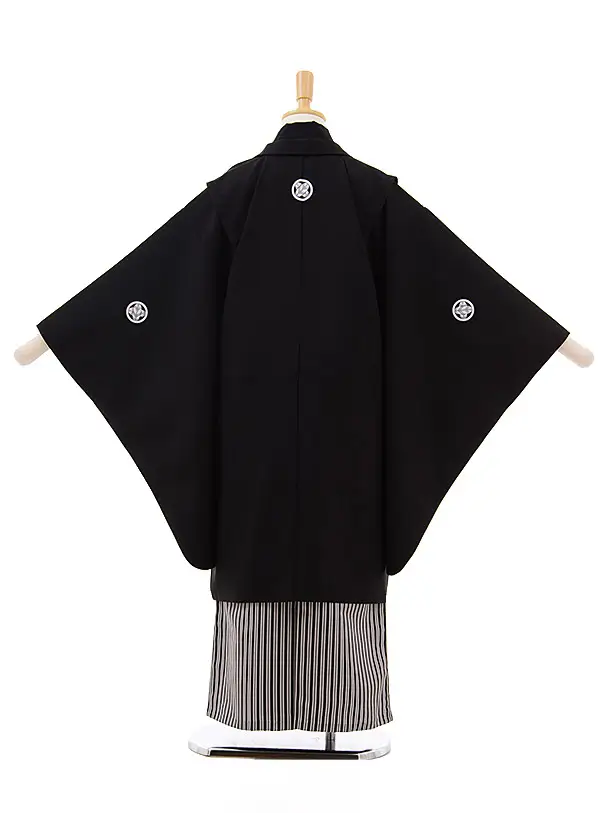 七五三(5.6歳男袴)5386 黒紋付×黒縦縞