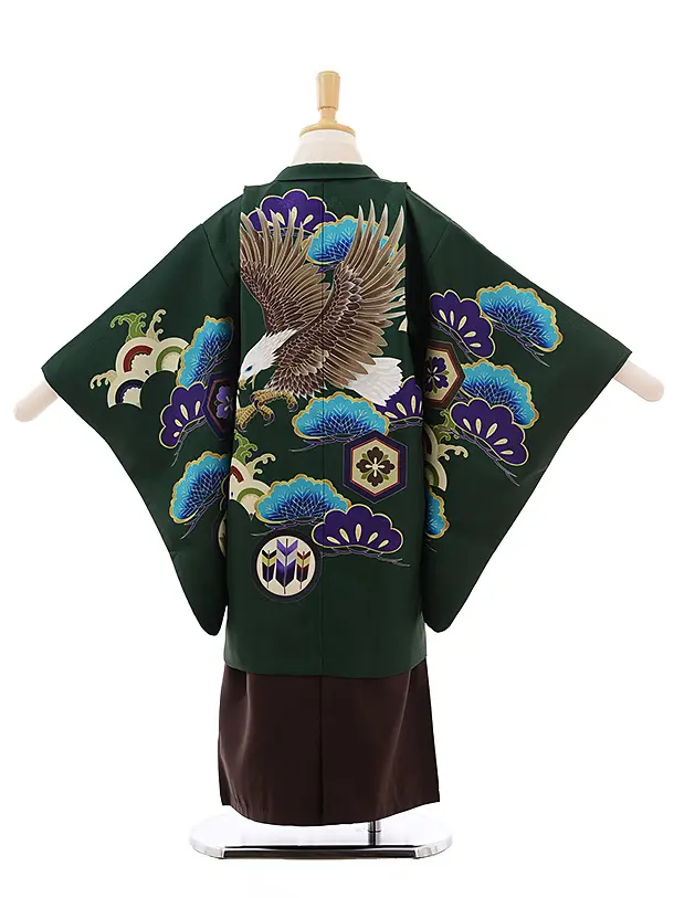 かんたん七五三(5歳男袴)5389 小町kids グリーン地 松鷹×濃茶袴