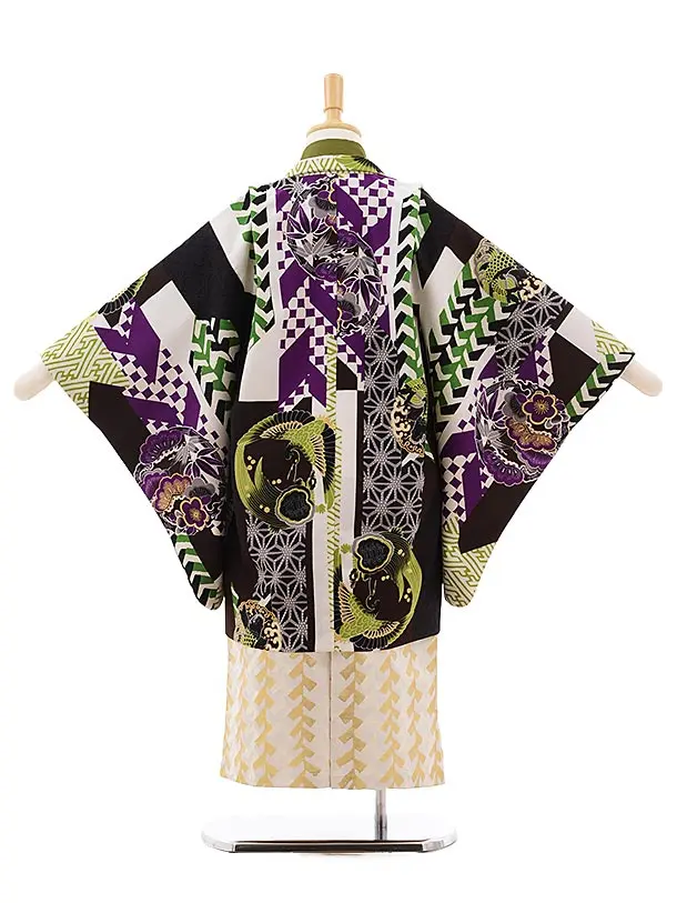 七五三(5歳男袴)5397 HAIBARA グリーン 矢羽根に丸紋×クリーム袴