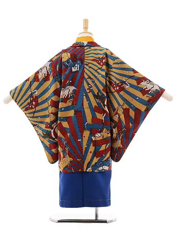七五三(5歳男袴)5401 モダンアンテナ ブルー×赤 恐竜と乗り物×青袴
