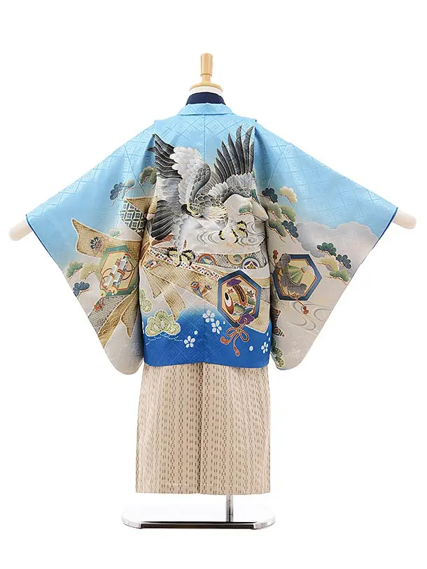 七五三(5.6歳男袴)5413 水色 束ねのしに鷹×ベージュ袴