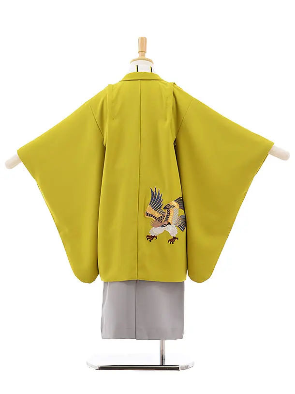 七五三(5歳男袴)5430 ライムグリーン 鷹 ししゅう×グレー袴