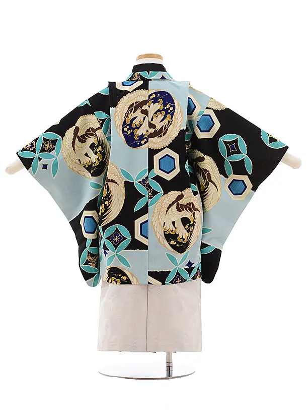 七五三レンタル(5歳男児袴)5438 JAPANSTYLE 黒.水色×白地袴