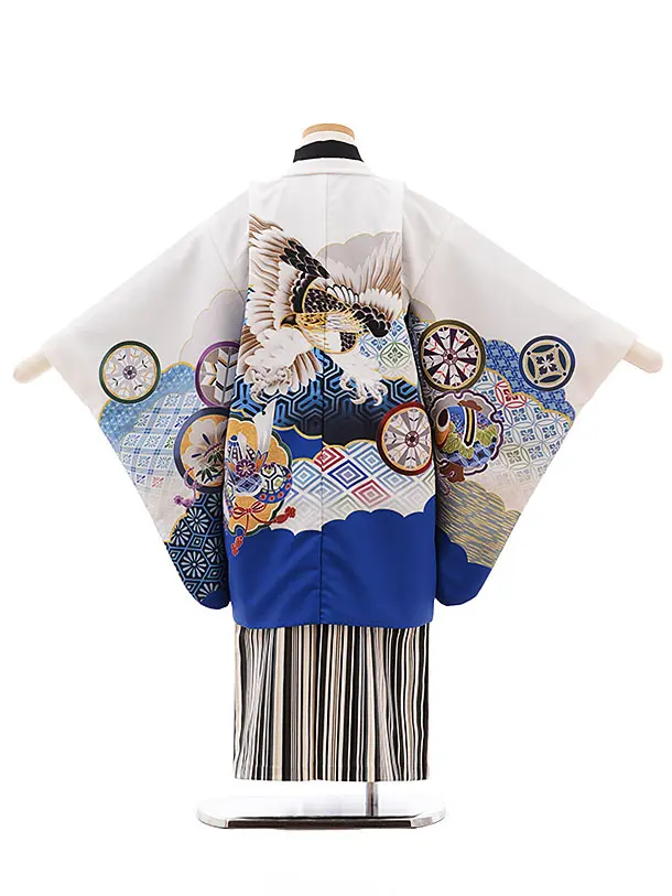 七五三レンタル(5.6歳男児袴)5450 式部浪漫 白地 鷹紋×ベージュ縞袴
