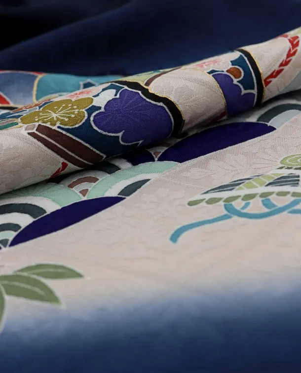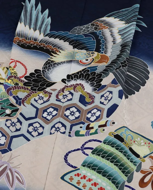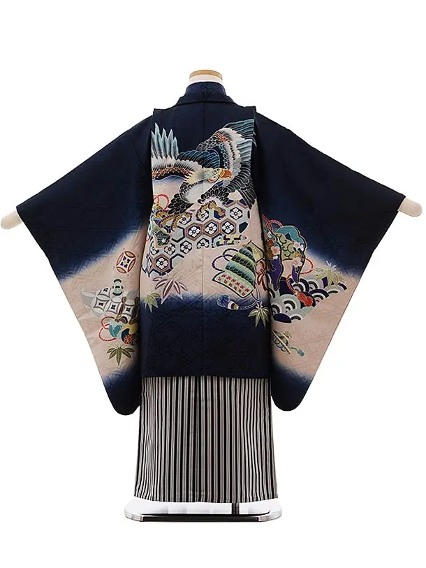 七五三(5歳男児袴)5469 (正絹) 紺地 鷹×黒白縞袴