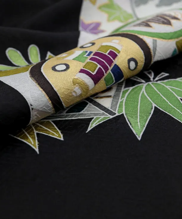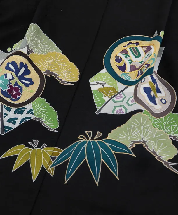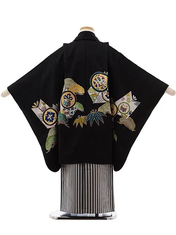 七五三(5歳男児袴)5471 (高級正絹) 黒地 松に丸紋×黒白縞袴