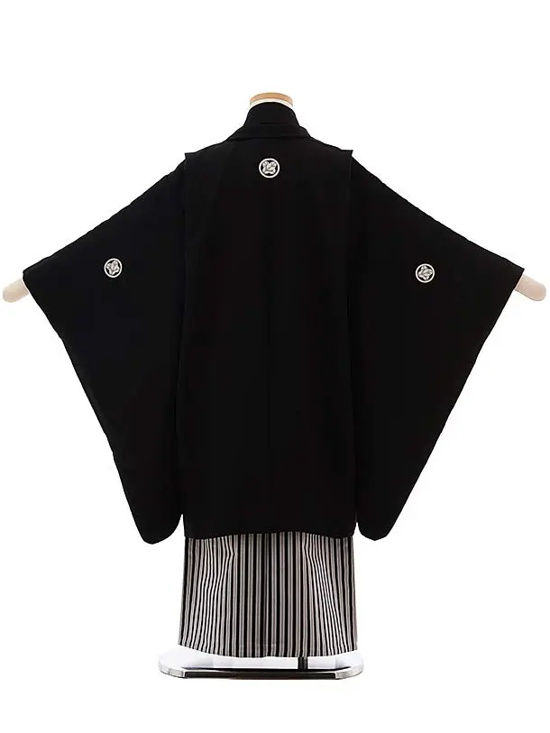 七五三(5歳男児袴)5477 (正絹) 黒 紋服×黒白縞袴