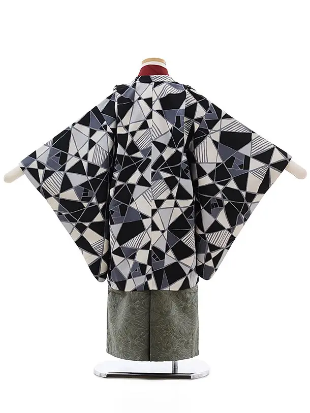 七五三レンタル(5歳男児袴)5486 ステンドグラス柄 黒系×カーキ地袴