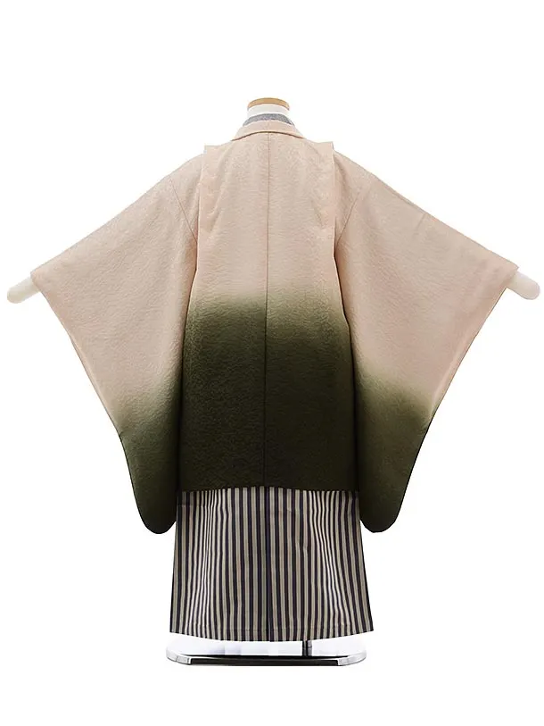 七五三(5歳男袴)5493 (正絹) ベージュグリーンぼかし×紫縞袴