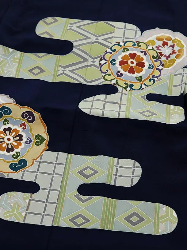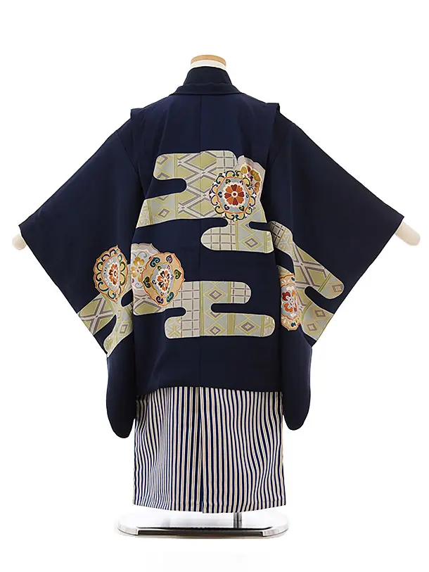 七五三レンタル(5歳男袴) 5499 (正絹)紺地かすみに花文x紺白縞