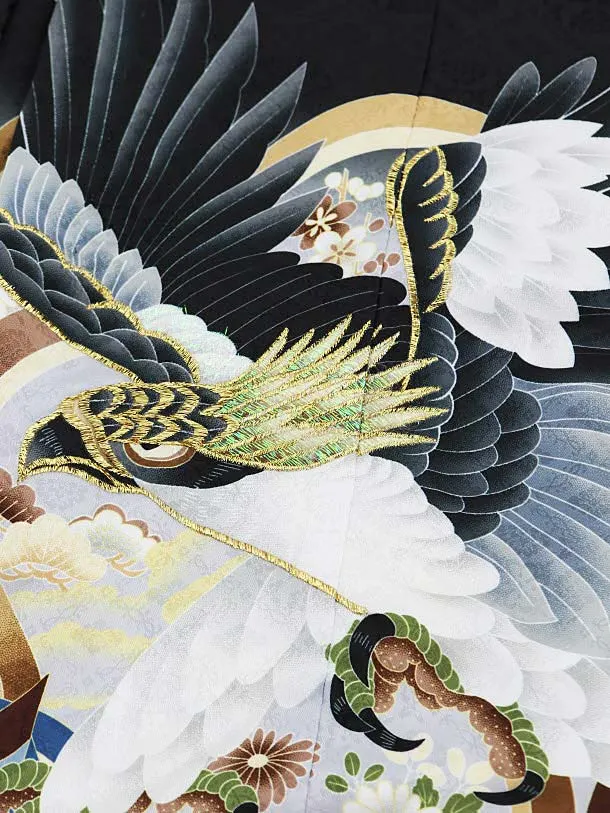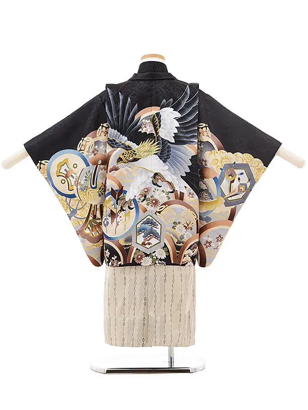七五三レンタル(4.5歳男袴)5508 黒地 丸紋 鷹×ベージュ袴