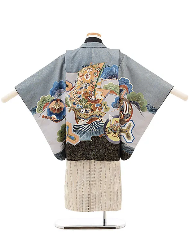 七五三レンタル(4.5歳男袴)5511 グレー地 裾黒 宝舟×ベージュ袴