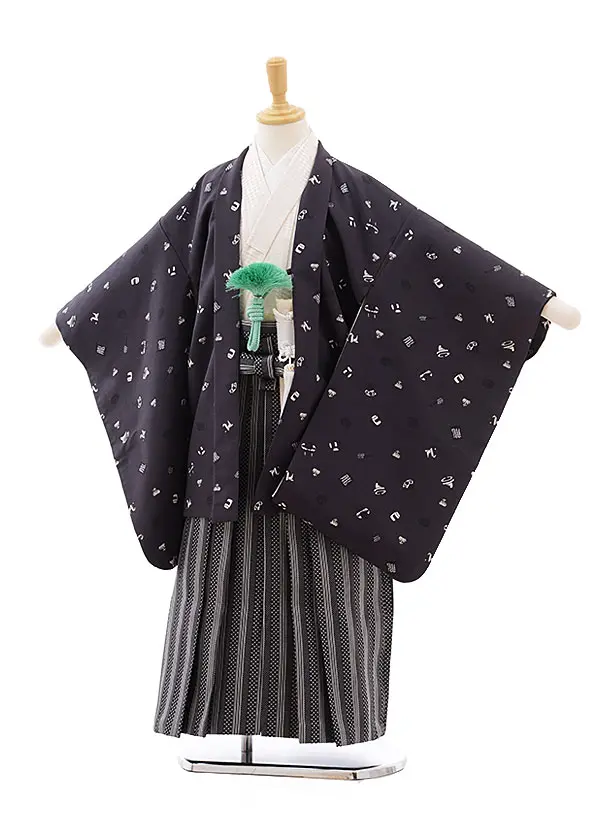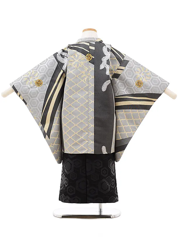 七五三レンタル(5歳男袴)5514 グレー 亀甲 羽根×黒袴