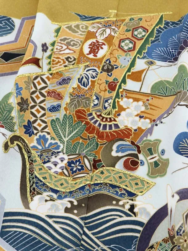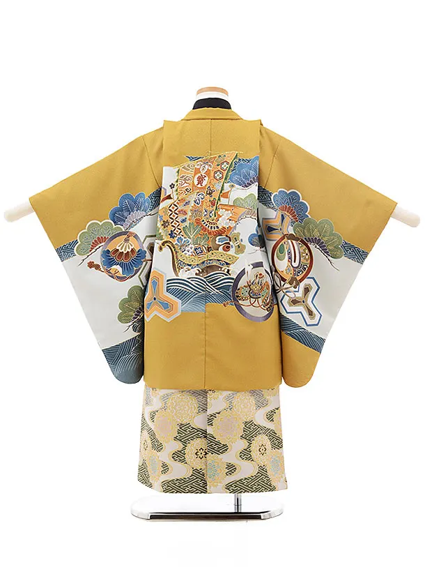 七五三レンタル(5歳男袴)5523 からし色 宝舟×白グリーン袴