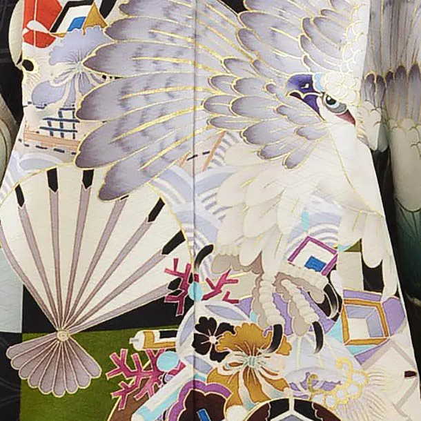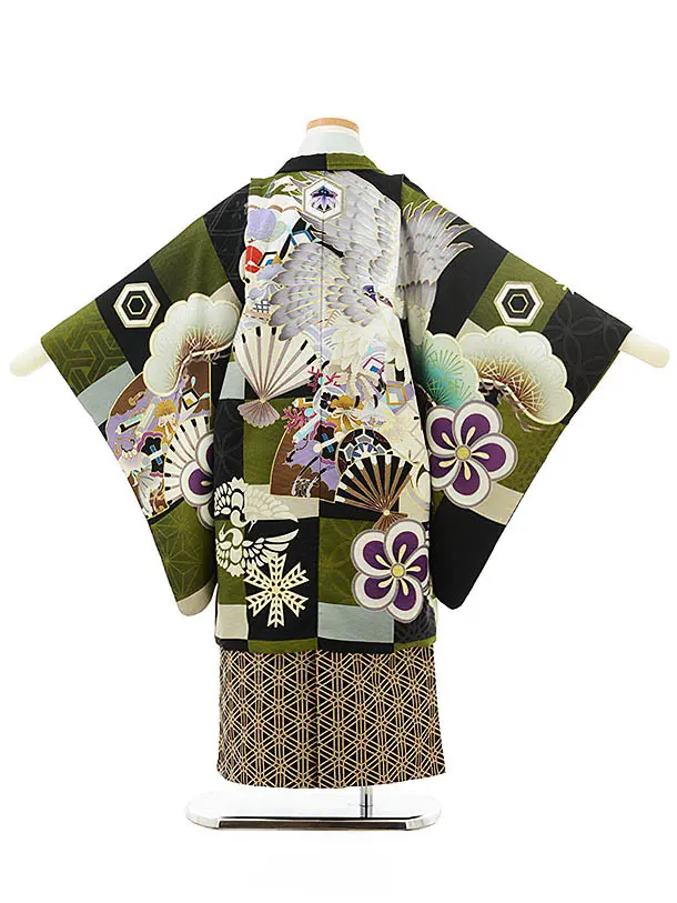 七五三レンタル(5歳男児袴)5535九重絵羽黒緑市松に鷹