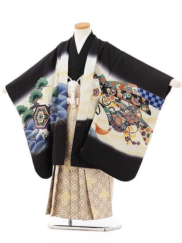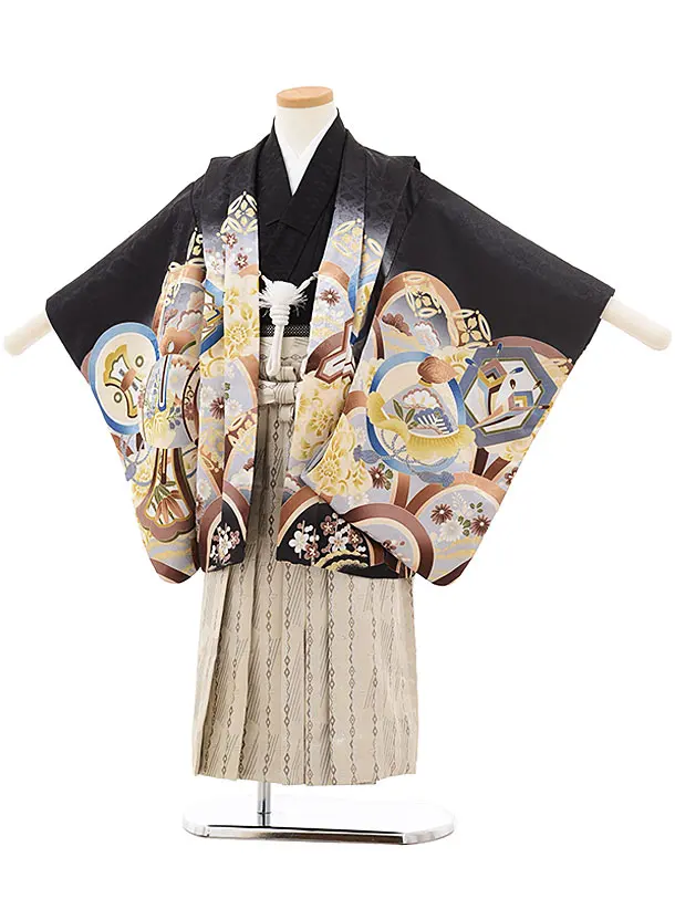 七五三レンタル(5歳男児袴)5541黒しゃれ紋×黒袴
