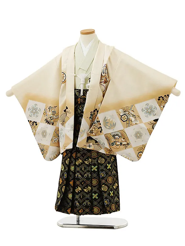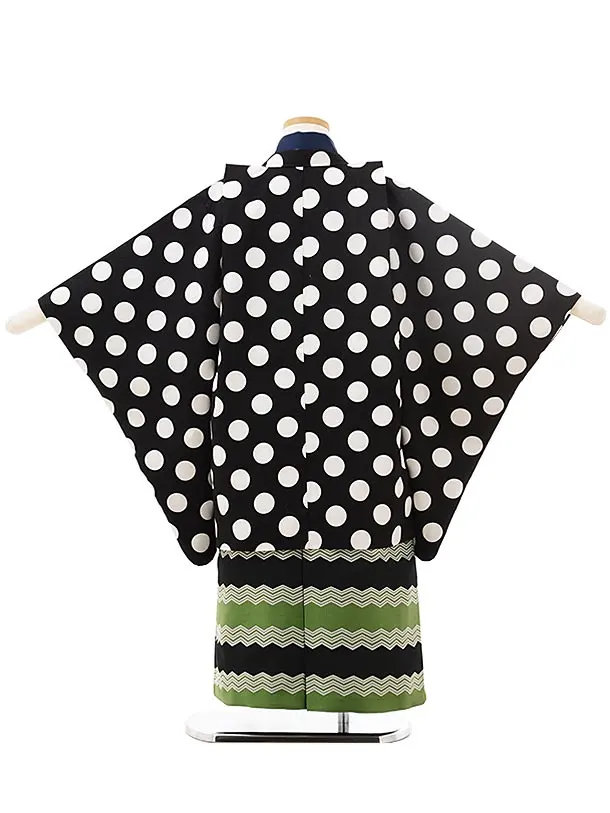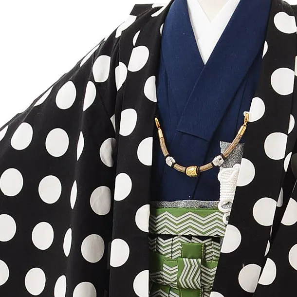 かんたん七五三レンタル(5男袴)5572 黒地白ドット×緑黒袴