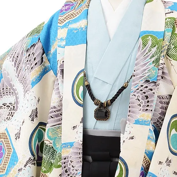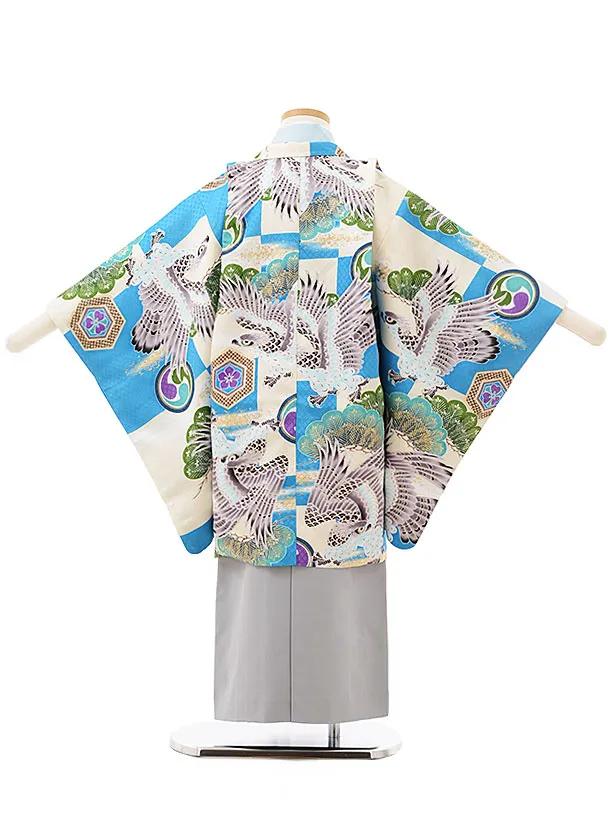 七五三レンタル(5歳男の子袴)5581水色市松に鷹×グレー刺繍袴