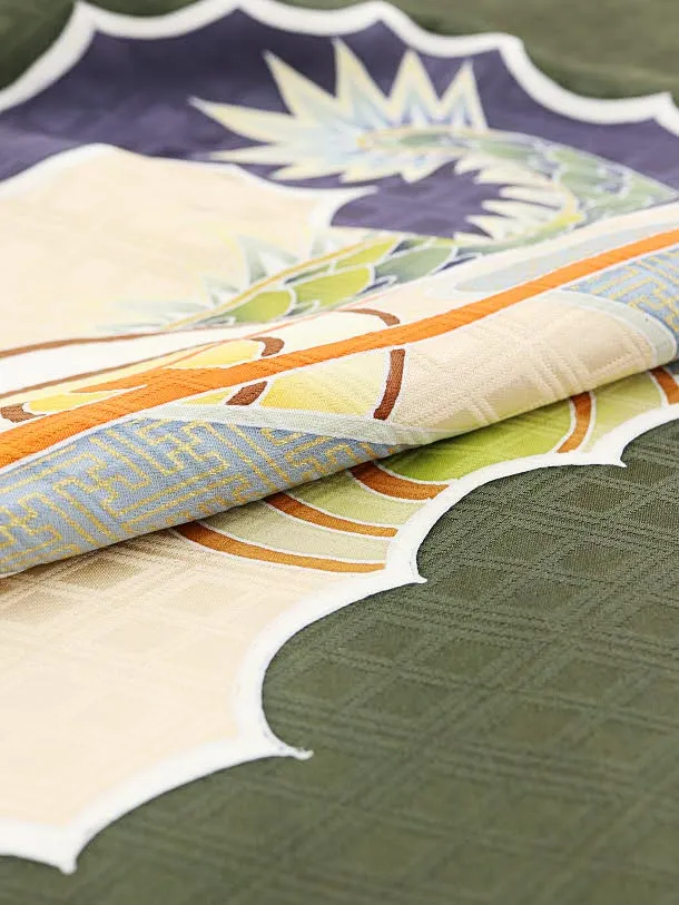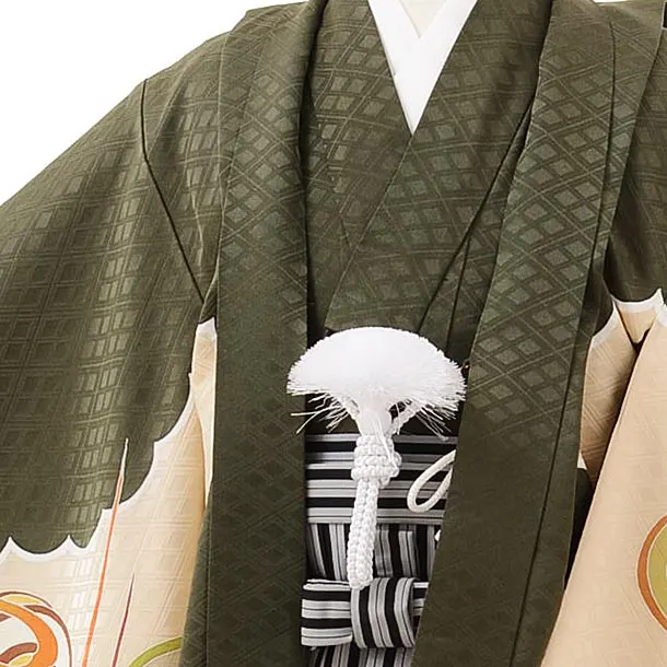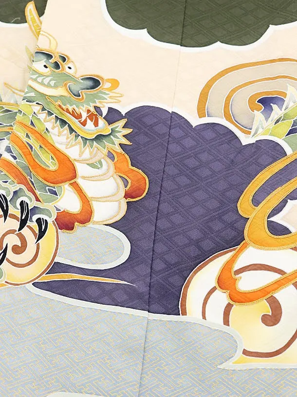 七五三レンタル(5歳男児袴)5587(正絹)モスグリーン地 龍×黒白縞袴