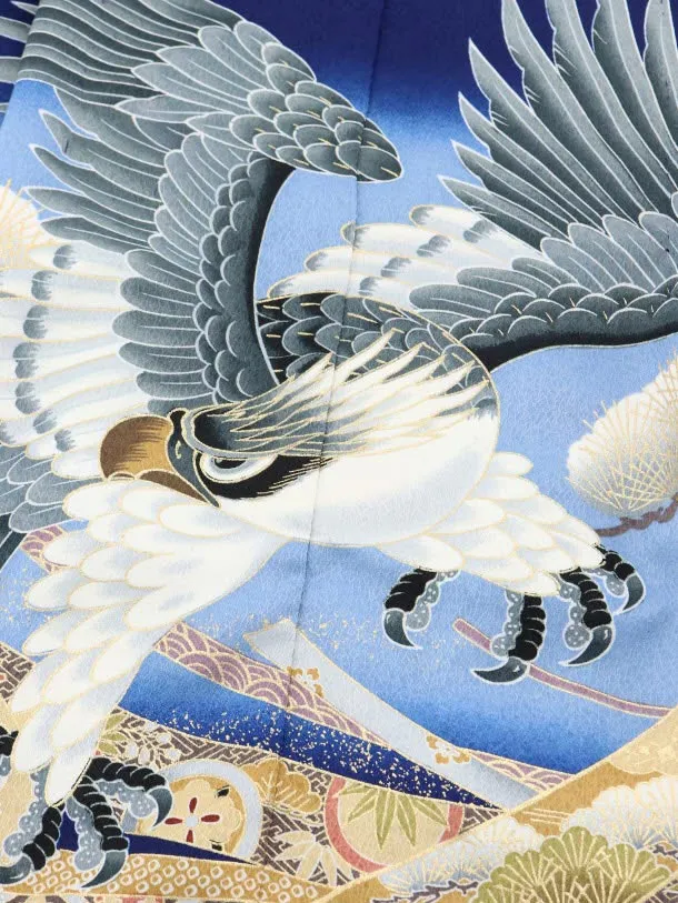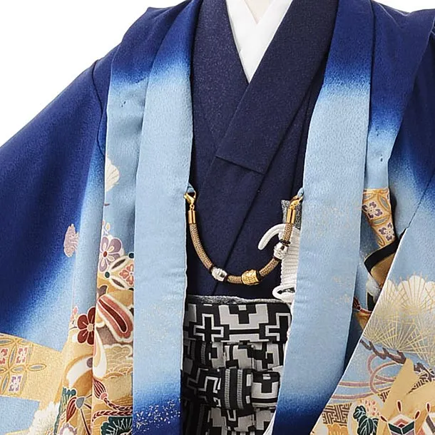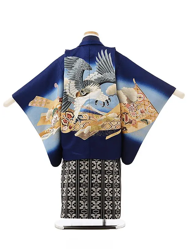かんたん七五三レンタル(5男袴)5599紺地ぼかし鷹×黒グレー袴