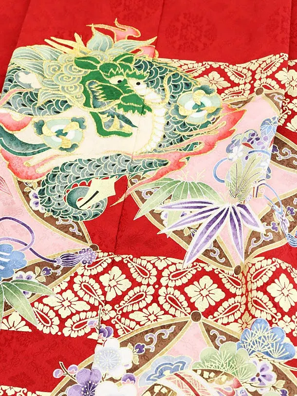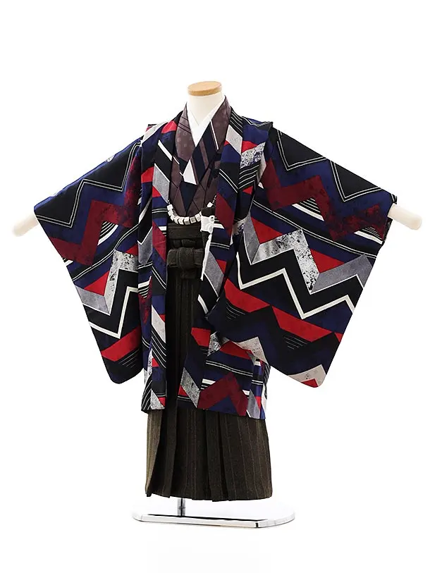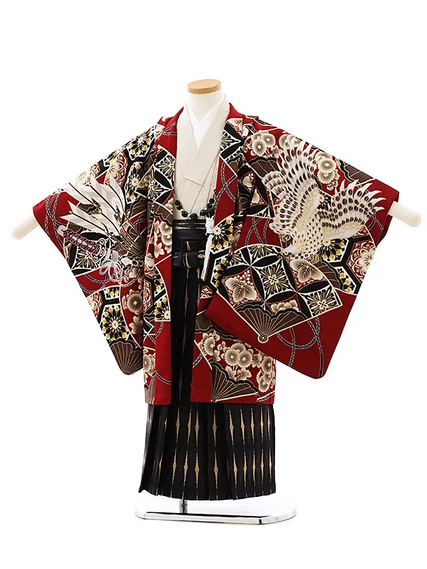 七五三レンタル(5歳男の子袴)5603赤地小槌に龍×黒金縞袴