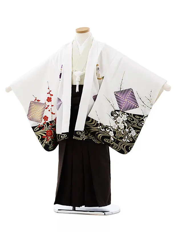 かんたん七五三レンタル(5歳男の子袴)5621白地鷹にのし×白黒縞袴