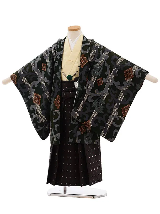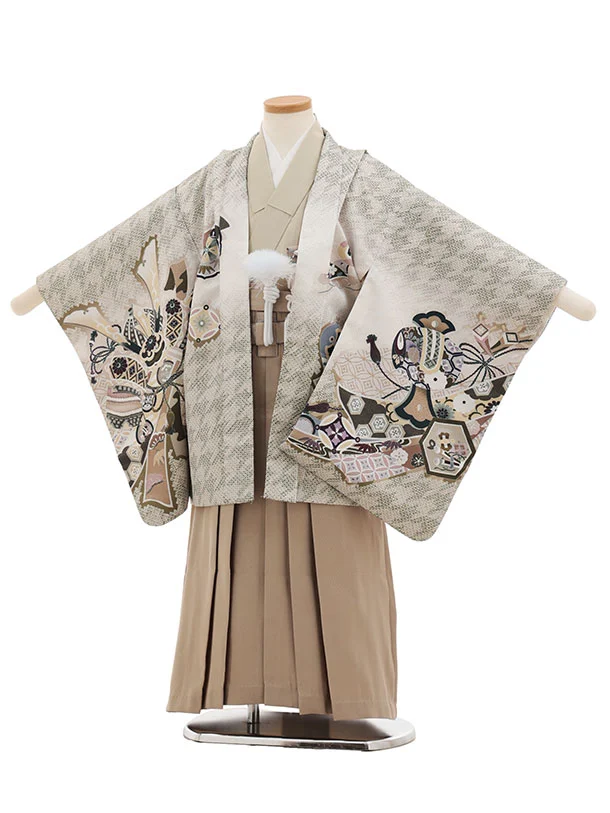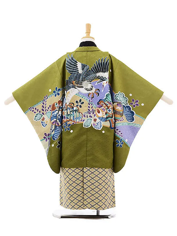 かんたん七五三(5歳男の子袴)5642緑地桐小槌に鷹場×ベージュに紺柄袴