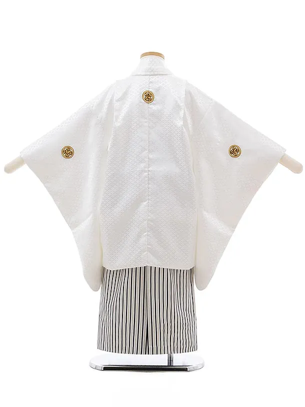 かんたん七五三レンタル(5歳男児袴)5650 白紋付×白黒 縞袴