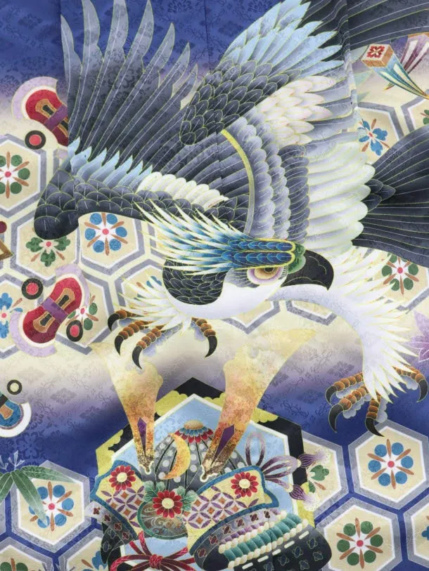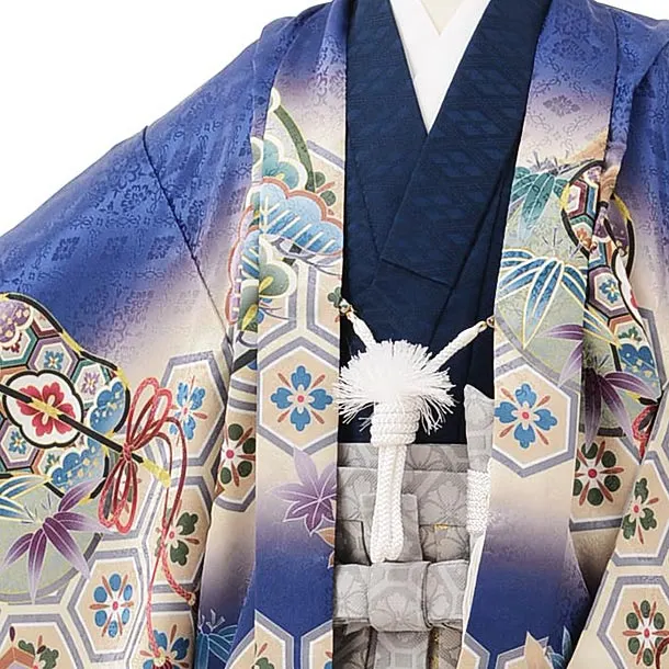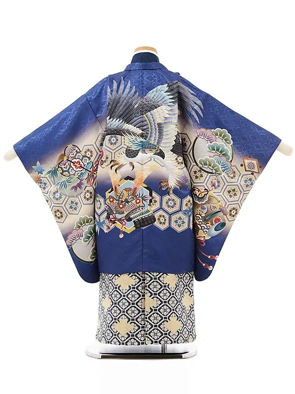 七五三レンタル(5歳男児袴)5659 紺地吉祥文様に鷹×グレー紺ぼかし菱袴
