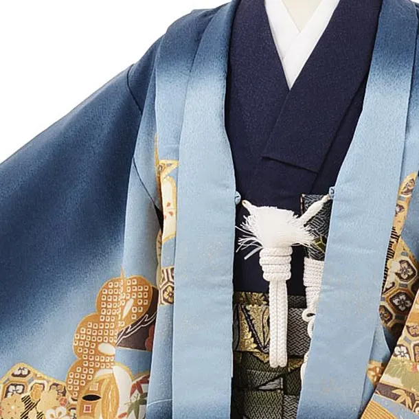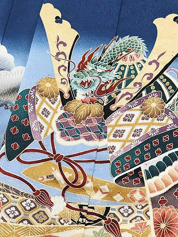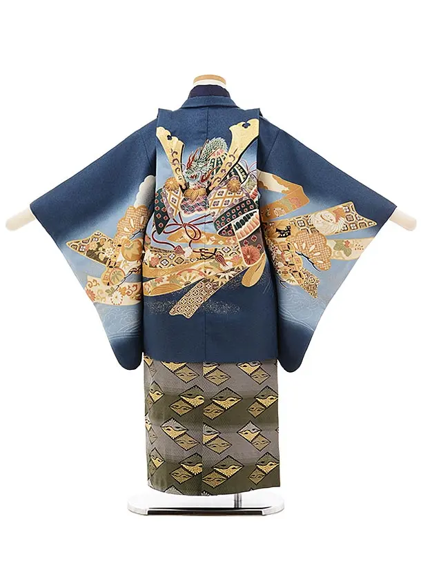 かんたん七五三レンタル(5歳男袴)5665紺地のしにかぶとxグリーンぼかし袴