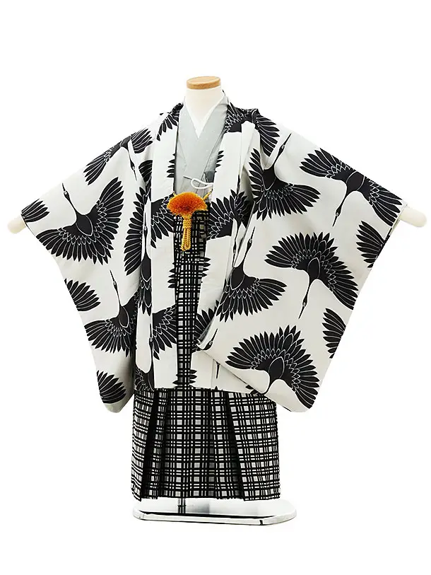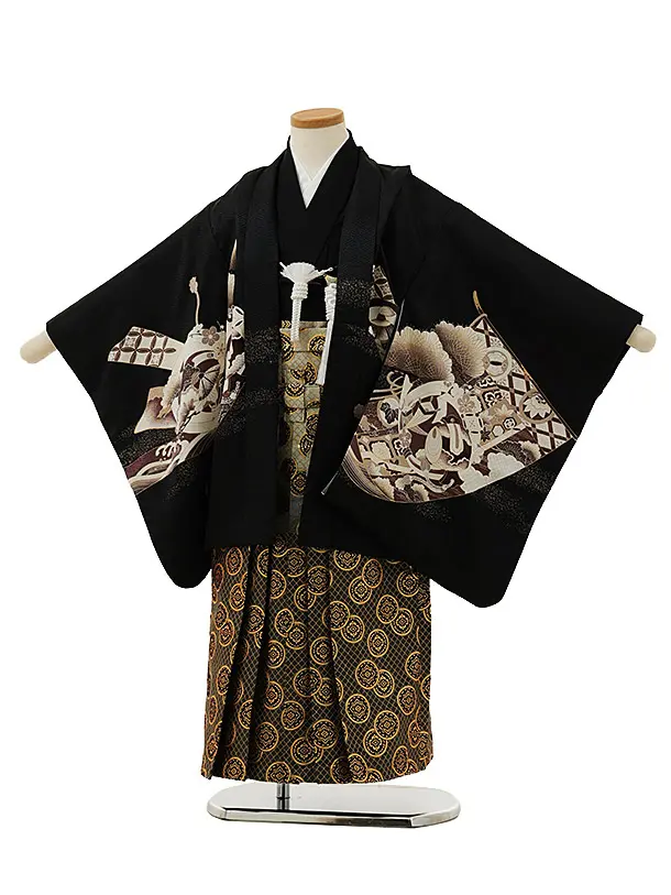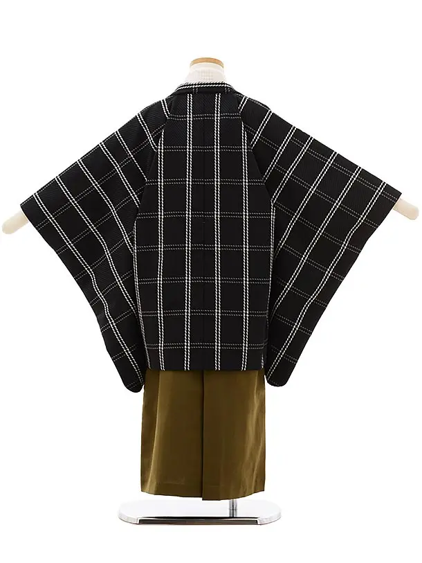 かんたん七五三レンタル(5歳男袴)5689黒チェックxカーキ色袴