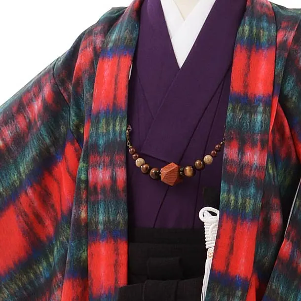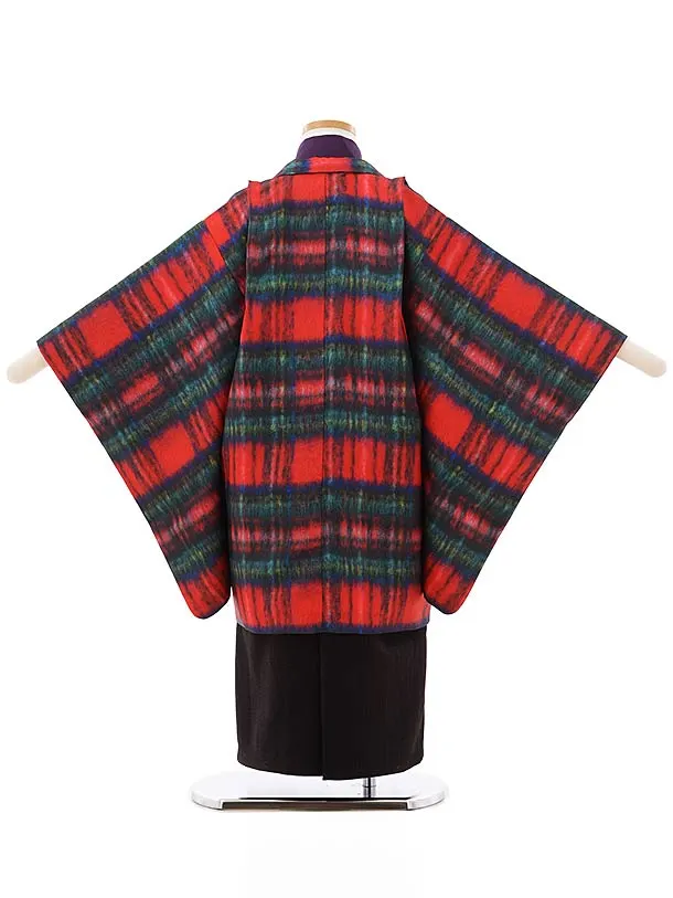 かんたん七五三レンタル(5歳男袴)5697赤チェックプリントxこげ茶袴