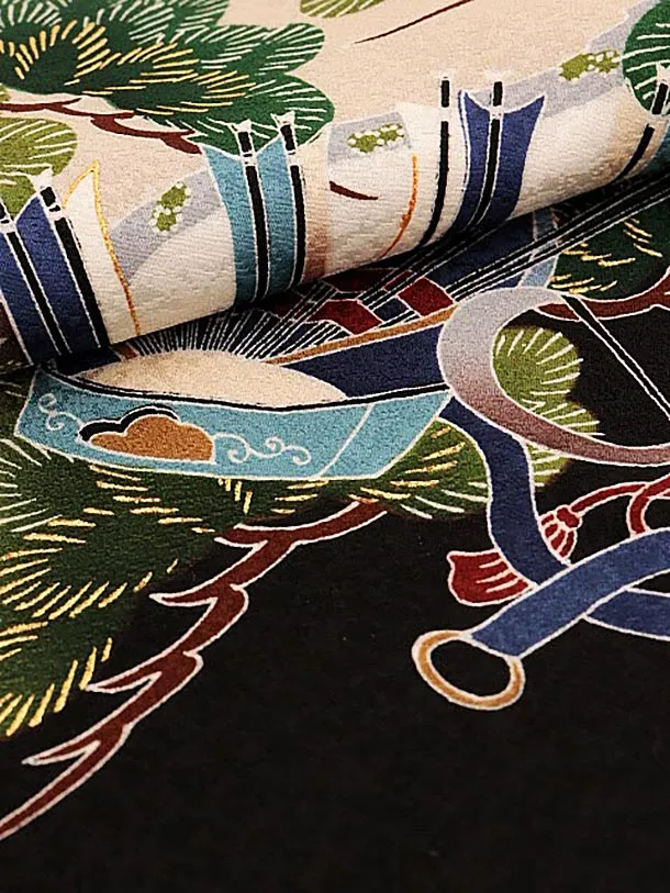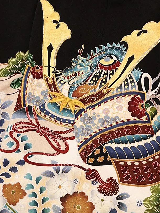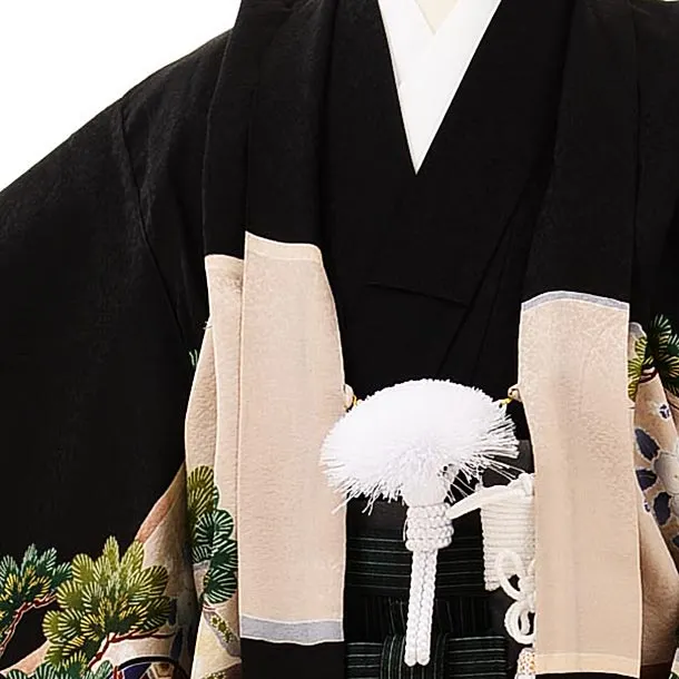 七五三レンタル(5歳男袴)5701黒地松に兜x黒緑縞袴