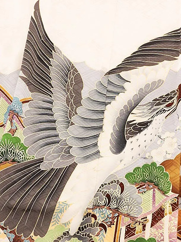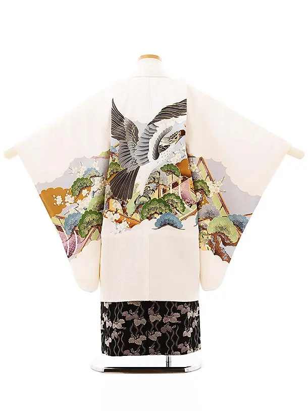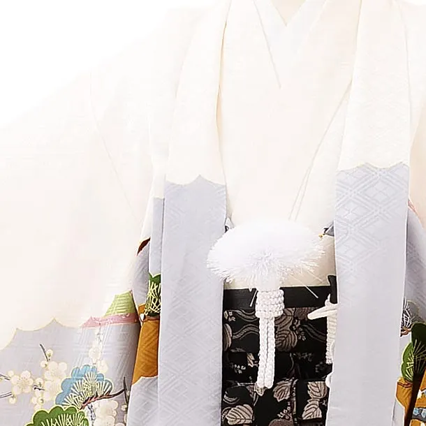 七五三レンタル(5歳男袴)5706白地松竹梅鷹x黒地桐袴