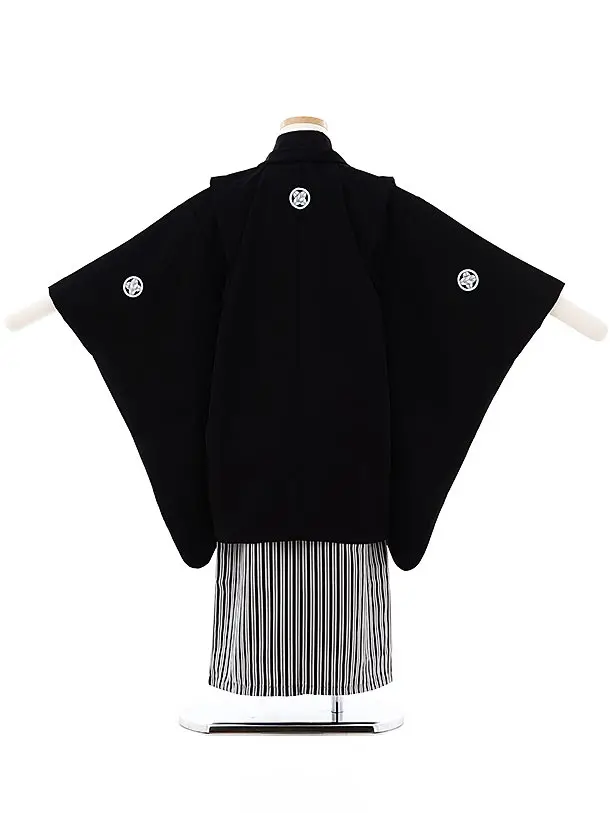 七五三レンタル(4歳,5歳男袴)5726黒紋付x黒白縞袴