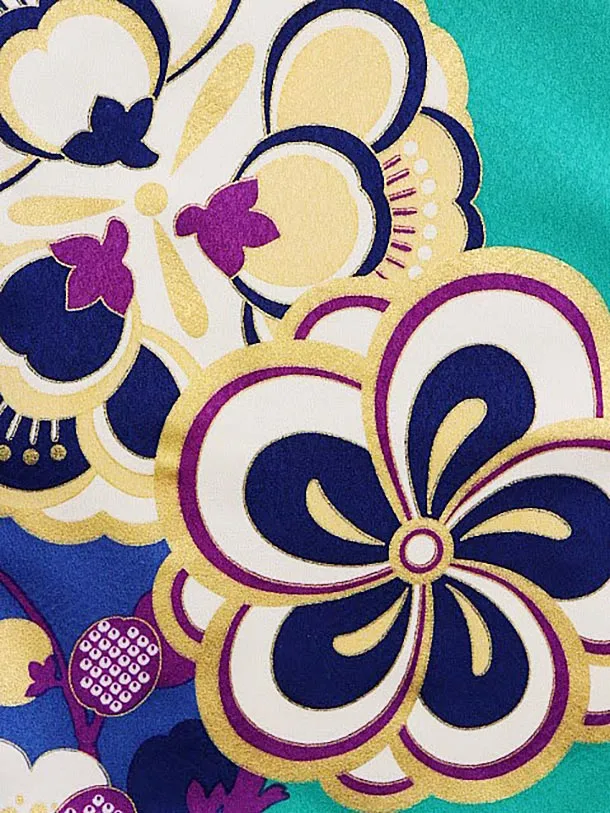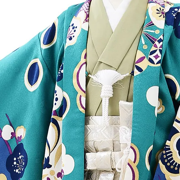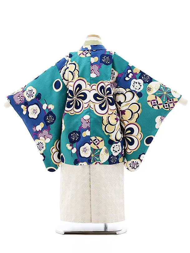 七五三レンタル(5歳男袴)5737ターコイズ梅x白シルバー袴